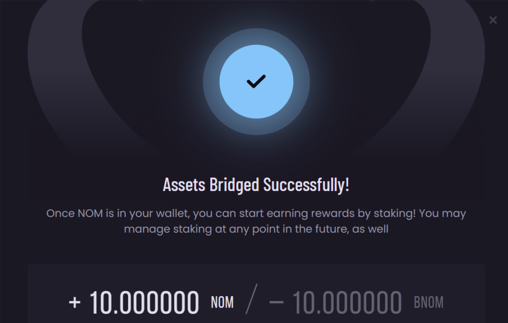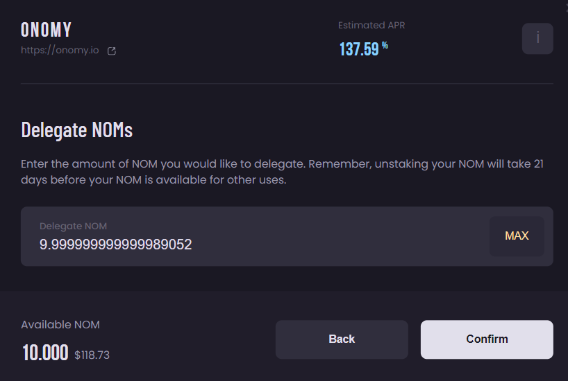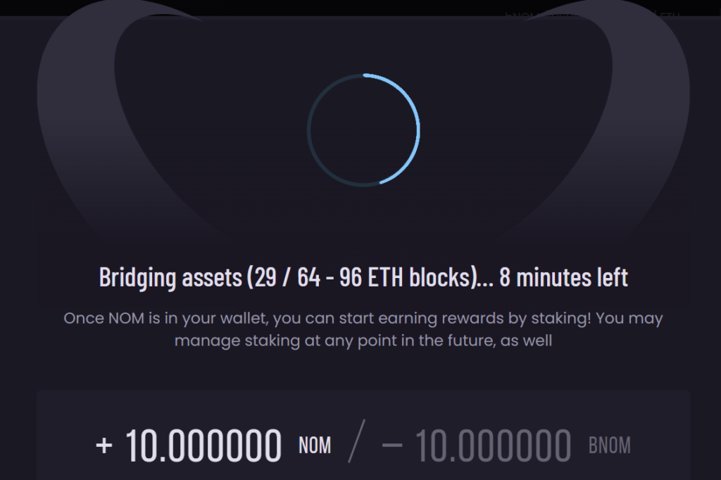 続いて、「Start Staking」からブリッジしたNOMをステーキングしましょう。