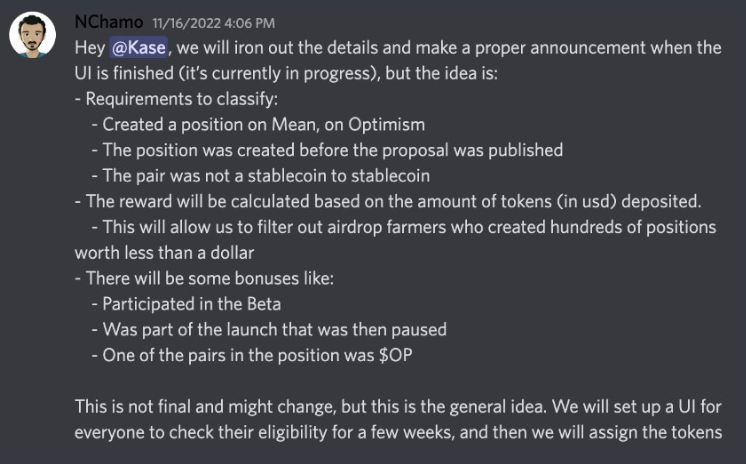 過去に、Optimismからグラントを受けた際に、利用者に対する$OPのエアドロップが行われたこともありました。