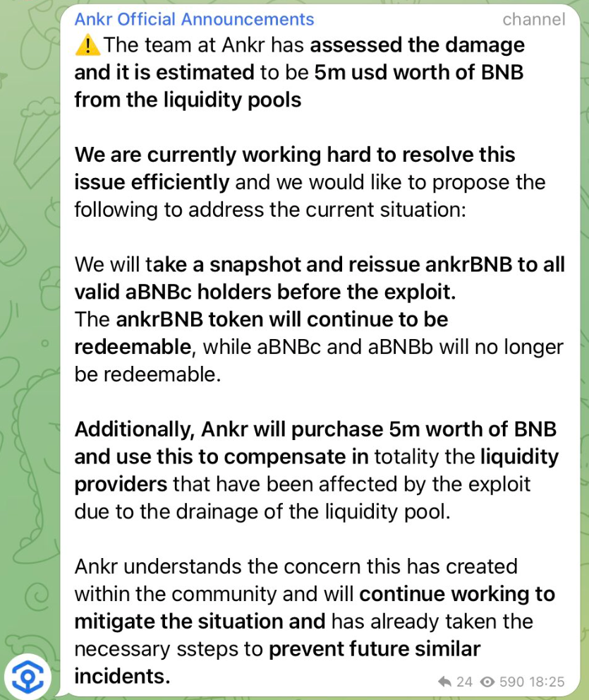 AnkrのExploit被害者、運営に補填される模様 Twitter Facebook コピー 2022.12.02 Binance肝いり案件ということもあり、損失額のサイズを鑑みて救われることになった形でしょうか。