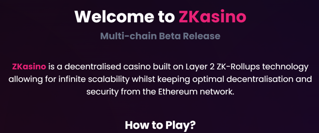 ZKasinoは、レイヤー2のZK-Rollups技術で構築された分散型カジノで、Ethereumネットワークからの最適な分散化を維持しながら、無限のスケーラビリティを可能にします。
