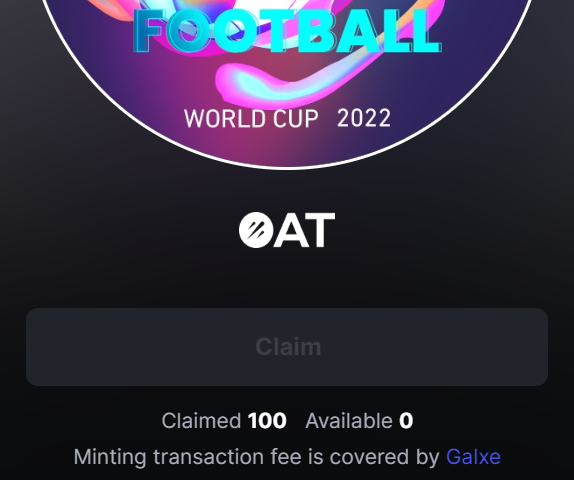 作業が完了すると、ClaimボタンからOATを獲得できる。