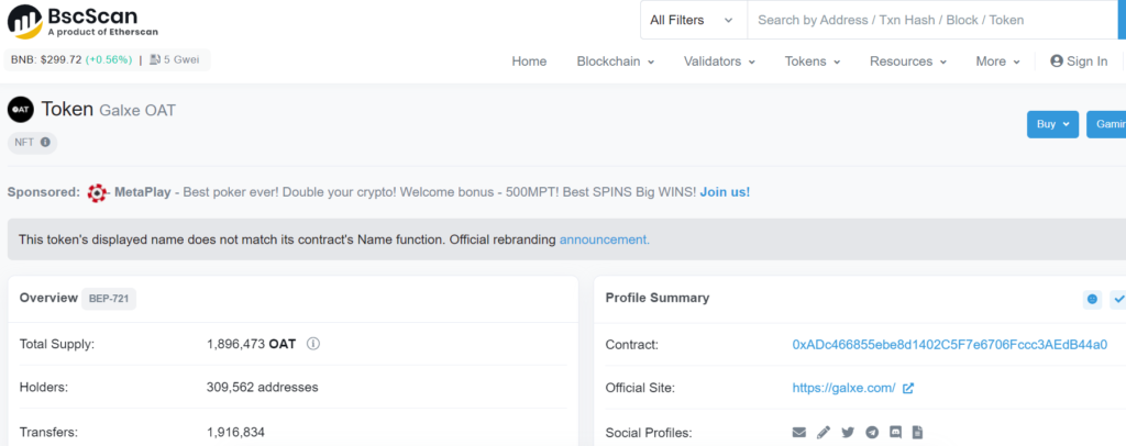 OAT(BEP721)のアドレスは下記